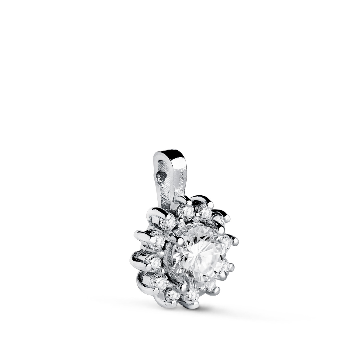 18K COLGANTE ORO BLANCO CUAJO CON 13 DIAMANTES 0,670 QTS. VS2-G. MEDIDA: 13 X 9,5 MM