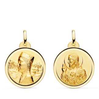 18K ESCAPULARIO ORO AMARILLO VIRGEN MONTSERRAT Y CORAZON DE JESUS BISEL 18 MM