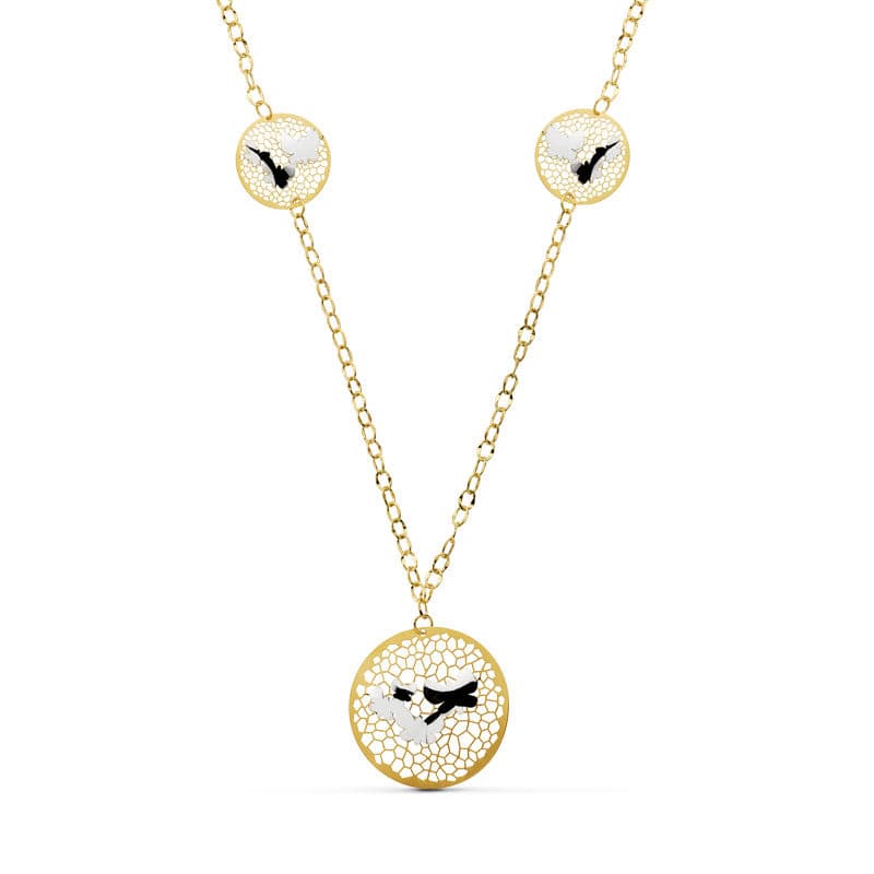 18K GARGANTILLA ORO BICOLOR COLGANTE REDONDO CON MARIPOSAS 47 CM