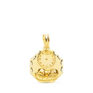 18K MEDALLA ORO AMARILLO ARCO NIÑO DE LA HORA CON RELOJ TALLADA 18X11 MM