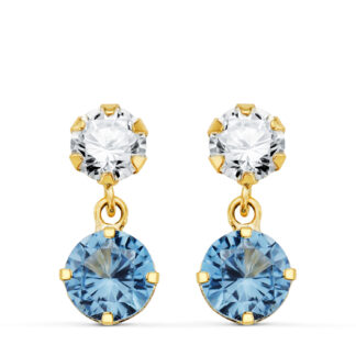 18K PENDIENTES ORO AMARILLO DOS CUERPOS CON CIRCONITA Y PIEDRA ROSA OVAL 16 X 5MM. CIERRE PRESION