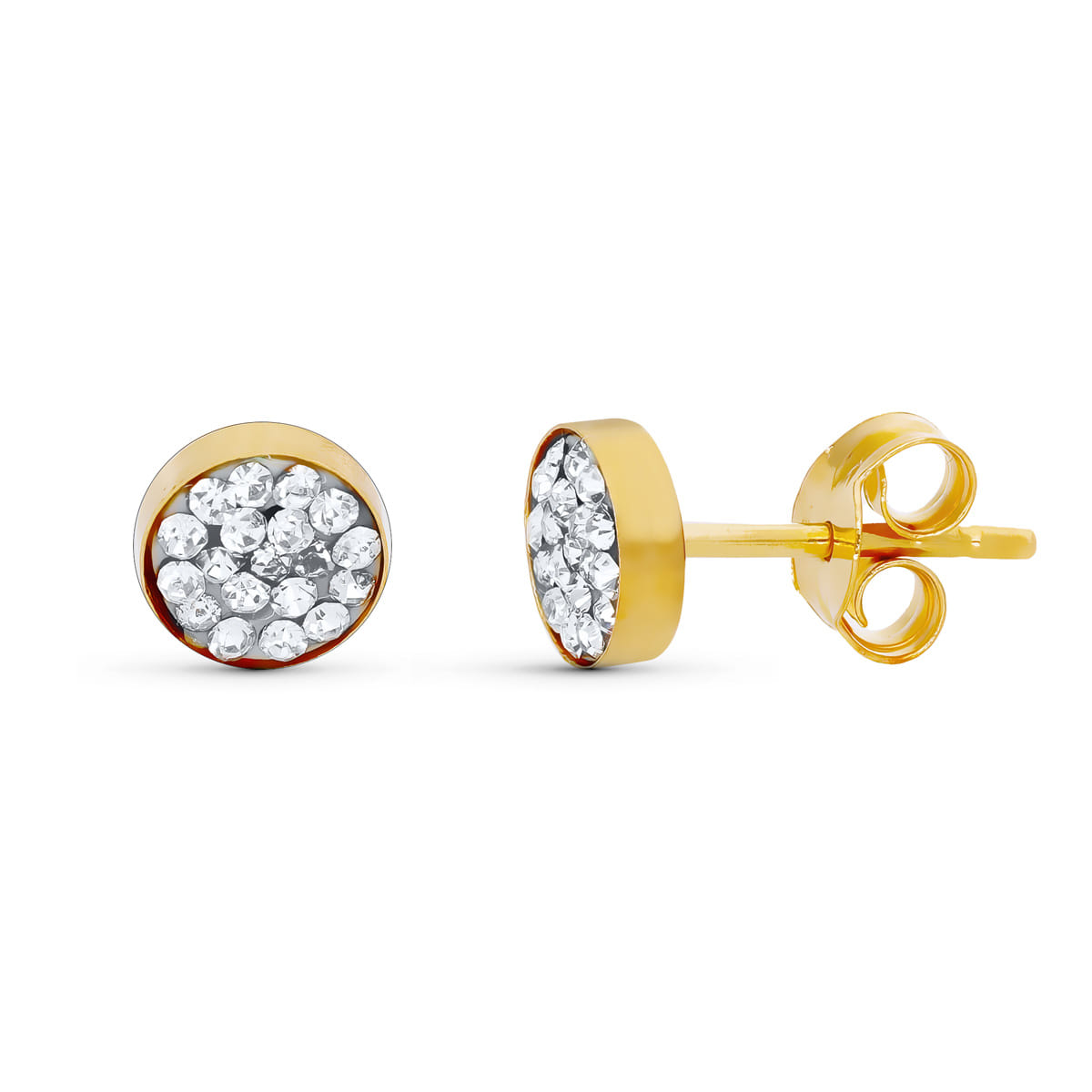 18K PENDIENTES ORO AMARILLO PIEDRAS REDONDO 4 MM CIERRE PRESION