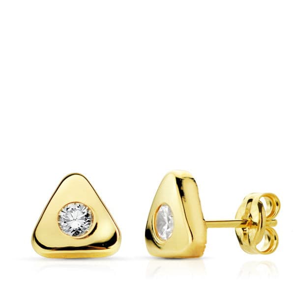18K PENDIENTES ORO AMARILLO TRIANGULO CIRCONITA7X7 MM CIERRE PRESION