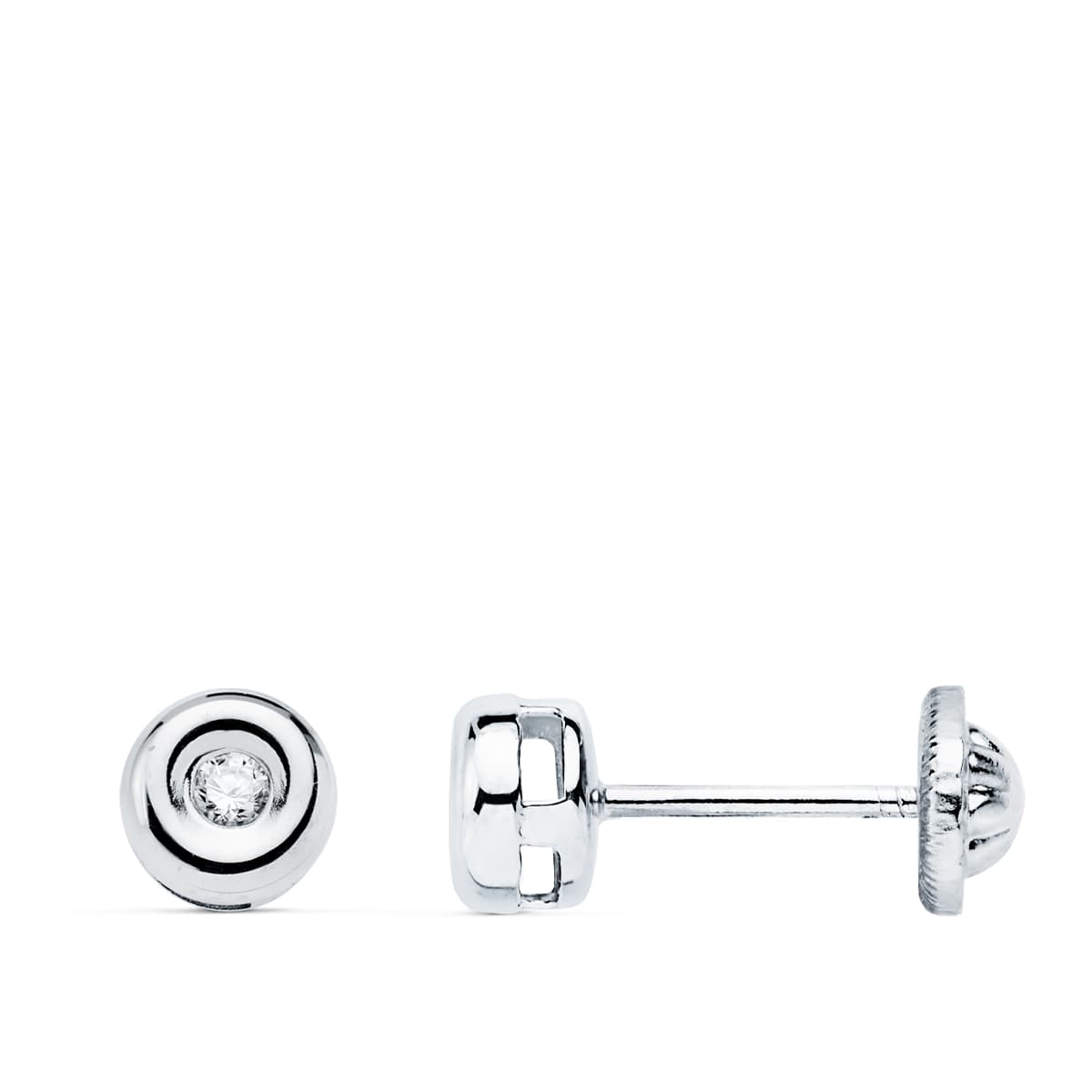 18K PENDIENTES ORO BLANCO DIAMANTES TALLA BRILLANTE 4.5MM 0.05 QTS.