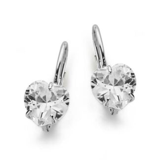 18K PENDIENTES ORO BLANCO PIEDRA CORAZON 7X7 MM CIERRE GANCHO