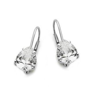18K PENDIENTES ORO BLANCO PIEDRA CUADRADA 7X7 MM CIERRE GANCHO