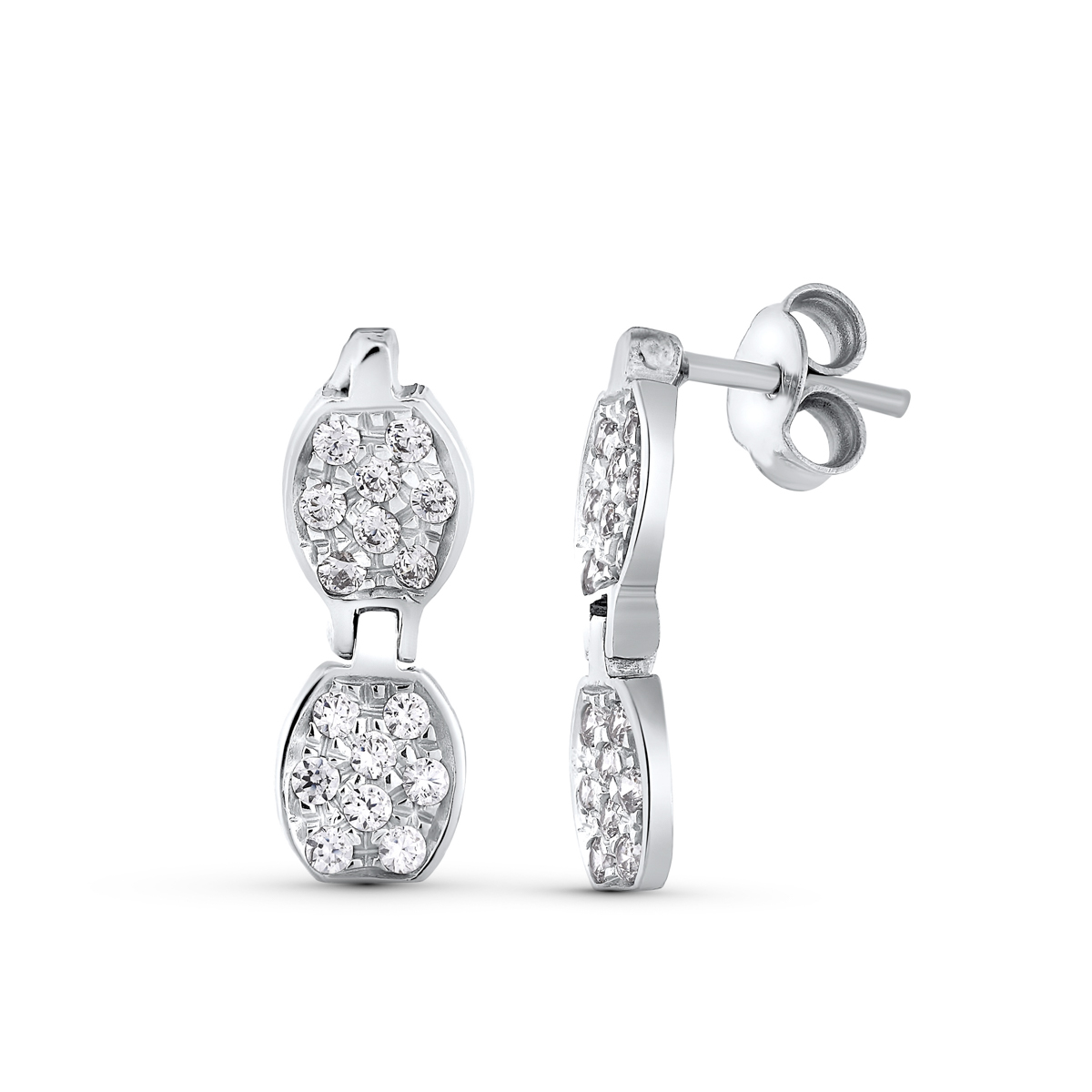 18K PENDIENTES ORO BLANCO Y CIRCONITA CIERRE PRESION