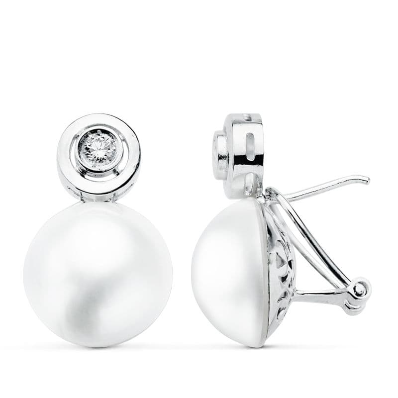 18K PENDIENTES PERLA JAPONESA 12 MM ORO BLANCO CIERRE OMEGA