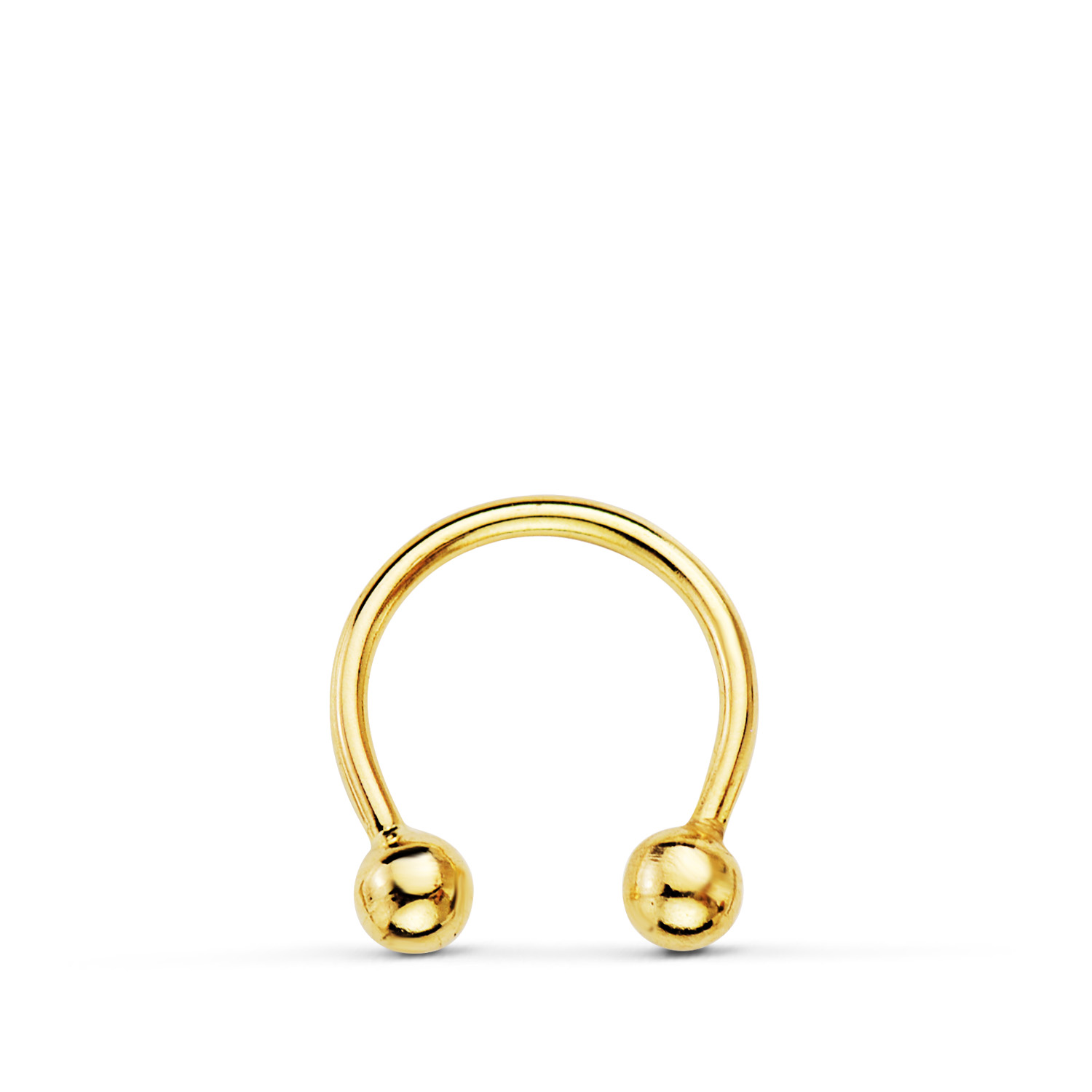 18K PIERCING ORO AMARILLO PEZON CURVO CON BOLAS 3MM 11 X 10MM