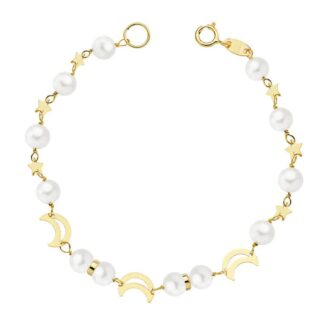 18K PULSERA ESCLAVA PERLAS ORO AMARILLO 3.5 MM 14.5 CM