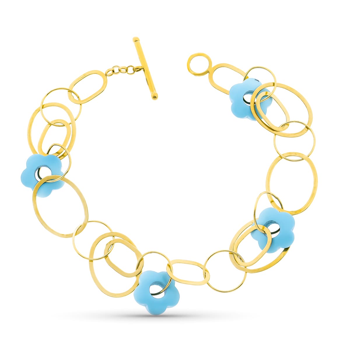 18K PULSERA ORO AMARILLO CIRCULOS Y FLOR TURQUESA 20CM