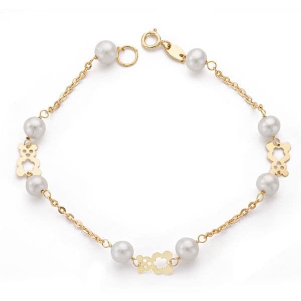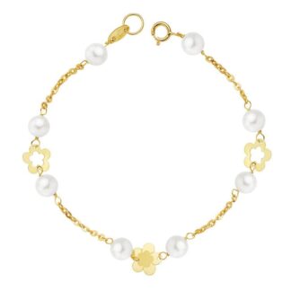 18K PULSERA ORO AMARILLO COMUNION PERLA 5.5 MM 17CM