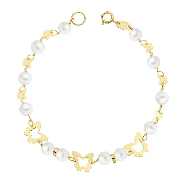18K PULSERA ORO AMARILLO COMUNION PERLA 5.5 MM 17CM