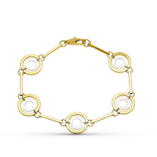 18K PULSERA ORO BICOLOR ARTICULADA MOTIVOS OVALES Y REDONDOS MATIZADOS. 19. CM