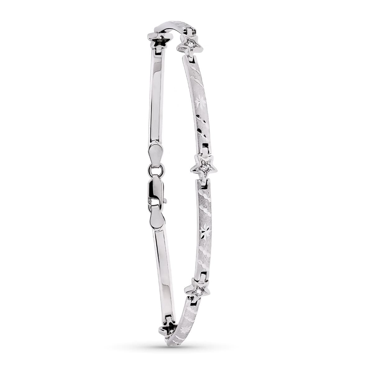 18K PULSERA ORO BLANCO MATE Y BRILLO BARRAS Y ESTRELLAS 19CM