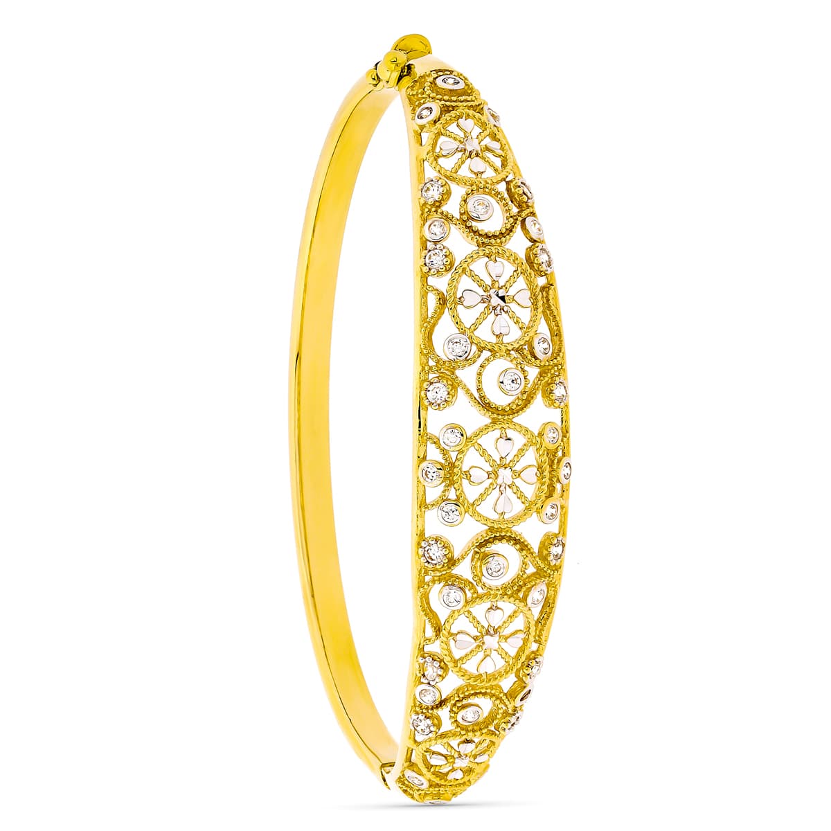 18K PULSERA RIGIDA FILIGRANA ORO BICOLOR CIRCONITAS