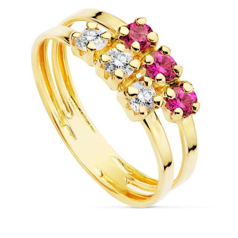 18K SORTIJA ORO AMARILLO CIRCONITA ROJAS Y BLANCAS. ANCHO: