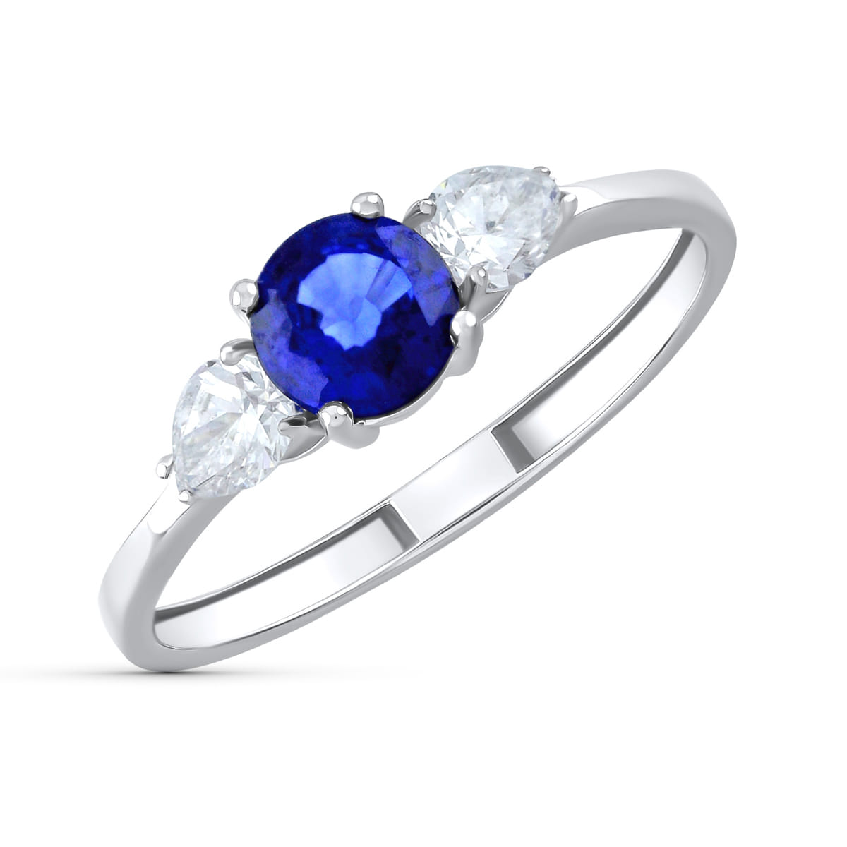 Sé el primero en valorar “18K SORTIJA ORO BLANCO ZAFIRO 5 MM 0,63 QT Y DIAMANTES LABORATORIO TALLA PERA 0,29QT. VS2 – E”